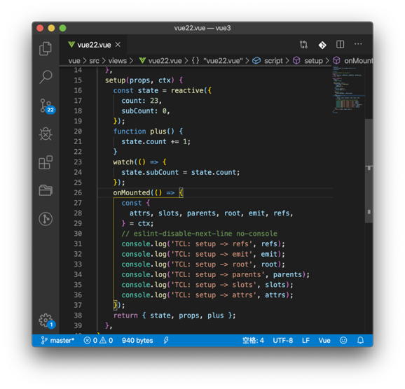 并且在vue3中,我们需要引入我们用到的api,这是vue3对代码的压缩优化,没有使用的api的相关代码最终打包时会移除掉。另外,基于函数API所写的代码可以更好的压缩,所有的函数名和setup函数体内部的变量名都可以压缩。但是对象和class的属性与方法名不可以。