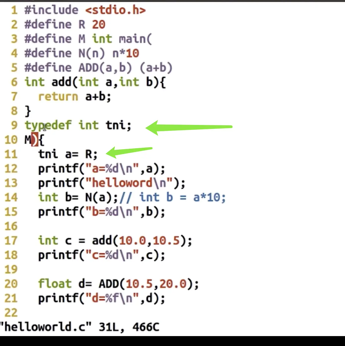 1、typedef 相当于取了一个别名, 在宏眼里是没有c语法的,但是typedef是c语法 2、宏在预编译会被替换(宏替换),typedef不会被替换,在工作中,typedef一般是用于自定义一个类型 3、typedef 是有作用域的