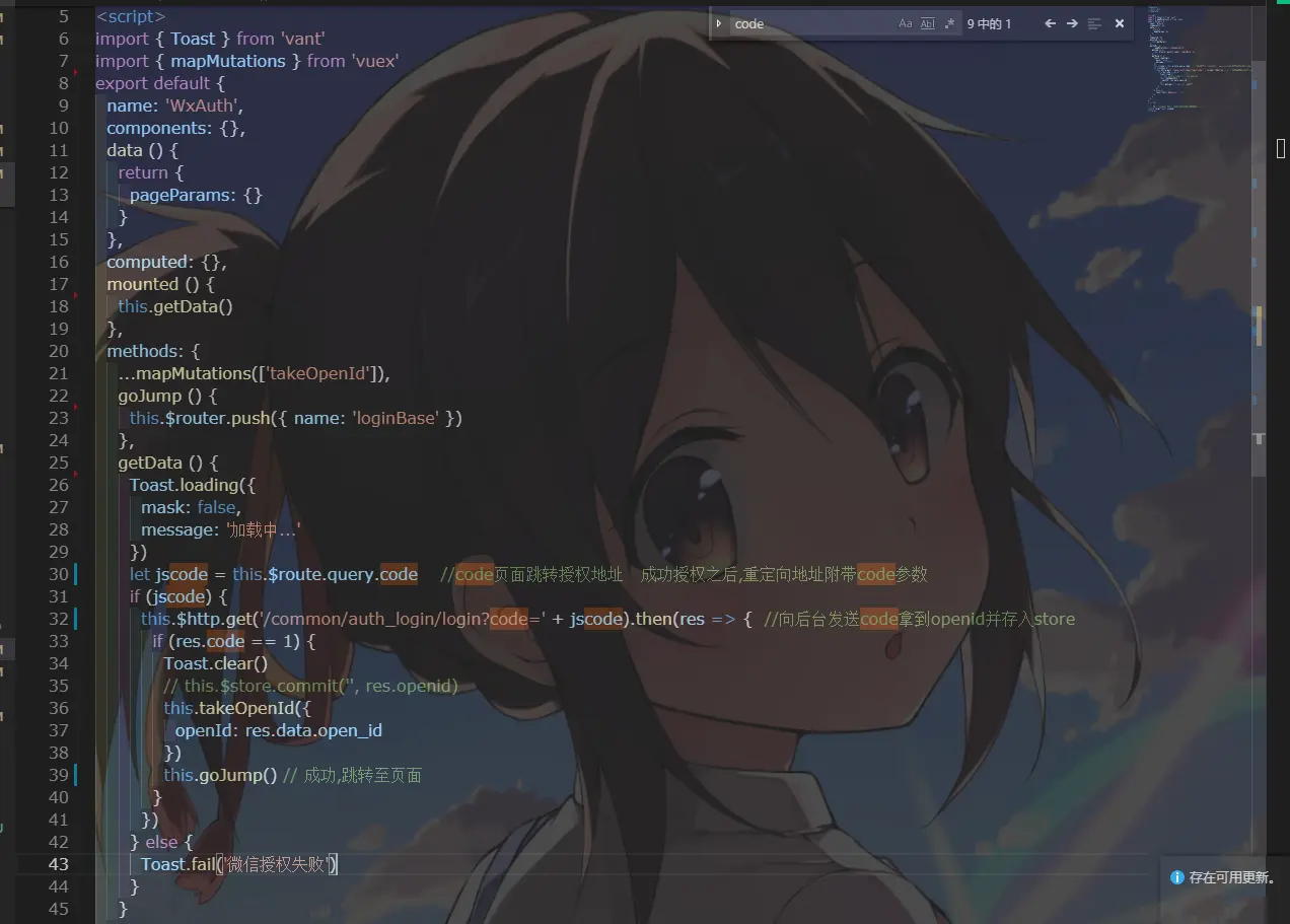 auth页面功能: 用户授权之后通过jscode获取openid