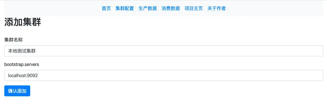 在新页面中输入 Kafka 集群的名称和 bootstrap.servers 的地址(多个地址用逗号分隔即可):