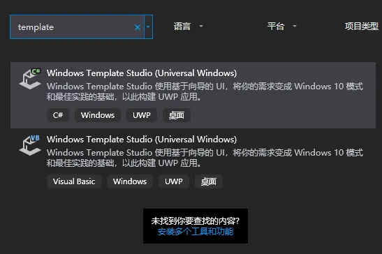 首先安装Windows Template Studio,它可以帮助开发者简单地创建UWP项目。