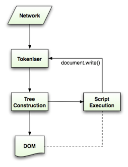 - 当转换为字符后,浏览器创建了自定义的解析器来解析 HTML,这种解析算法会对 HTML 代码进行标记化和树构建。