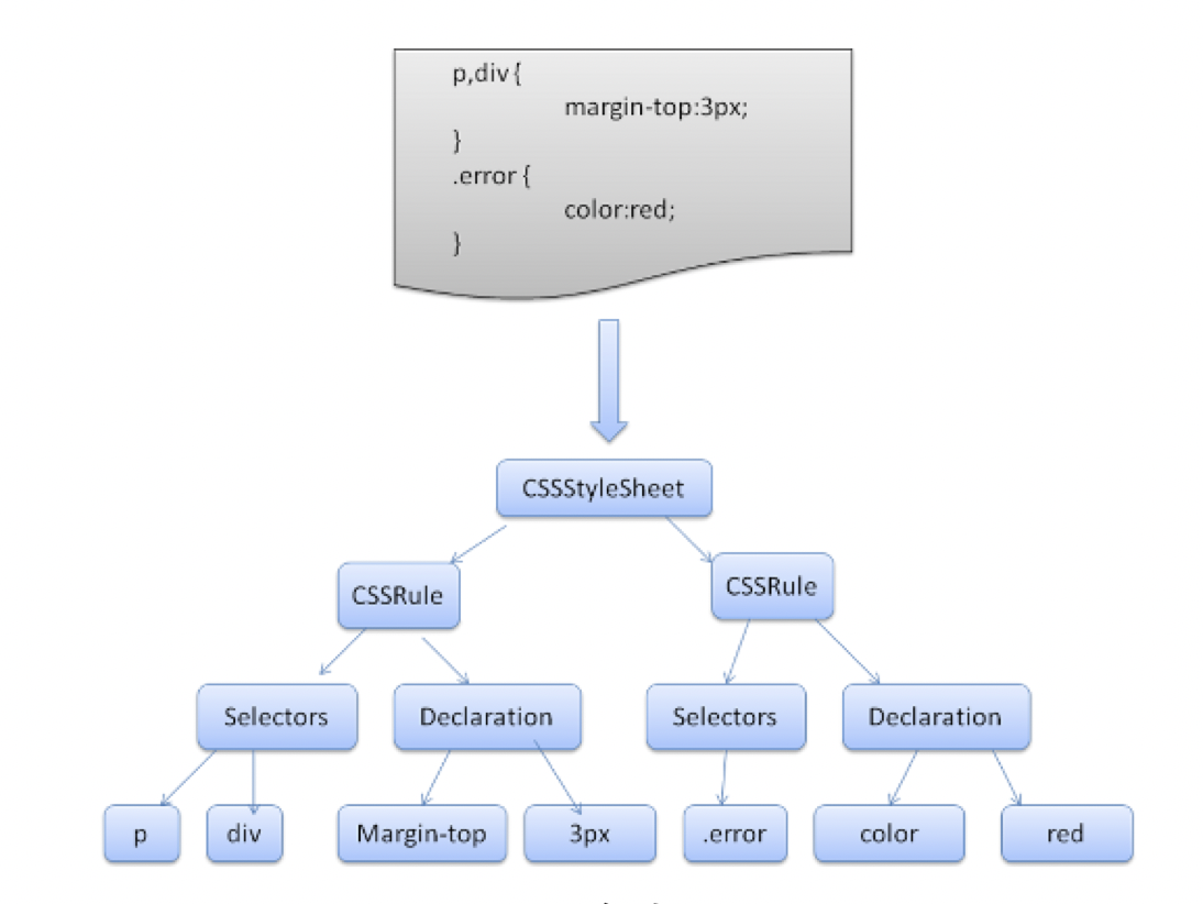 - DOM 树生成完毕。下一步,是将 CSS 解析生成 CSSOM 树。 5.CSSOM 树转换过程和 DOM 类似,但与解析 DOM 不同的是,webkit 用的是 Flex 和 Bison 解析器生成器,通过 CSS 语法文件自动创建解析器,他会自下而上的进行解析,最后将 CSS 文件解析成 StyleSheet 对象,如图。