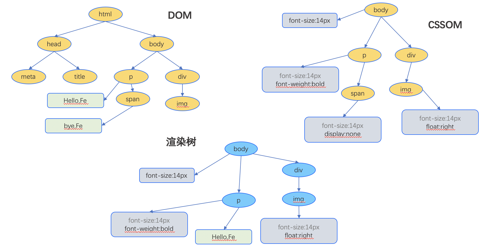 - 在构建 DOM 树的同时,浏览器就开始构建渲染树了。渲染树是由可视化元素按照其显示的顺序而组成的树,也是文档的可视化表示。