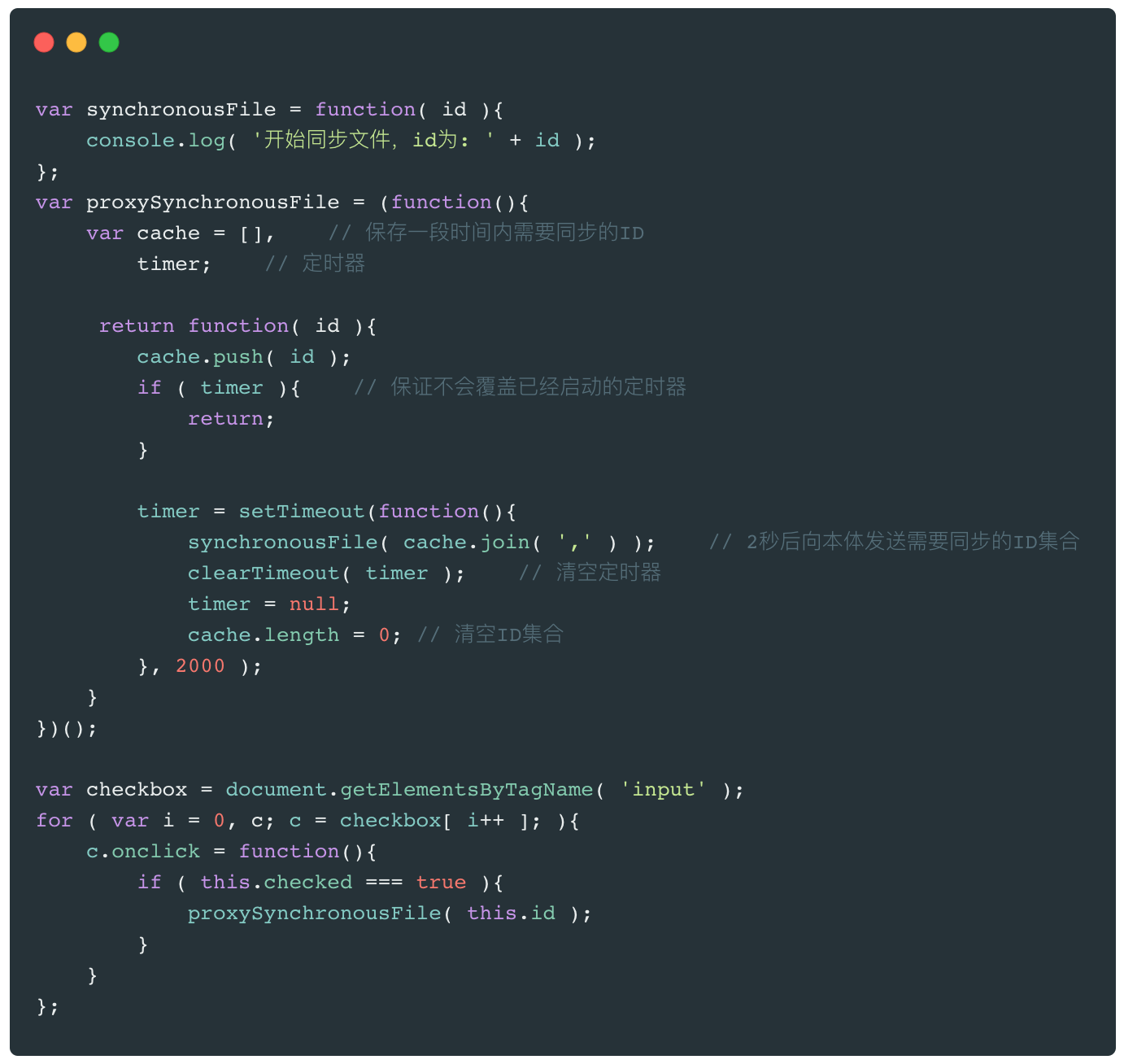 - 一方面,如果随着需求的变化,有两个职责总是同时变化,那就不必分离他们。比如在ajax请求的时候,创建xhr对象和发送xhr请求几乎总是在一起的,那么创建xhr对象的职责和发送xhr请求的职责就没有必要分开。