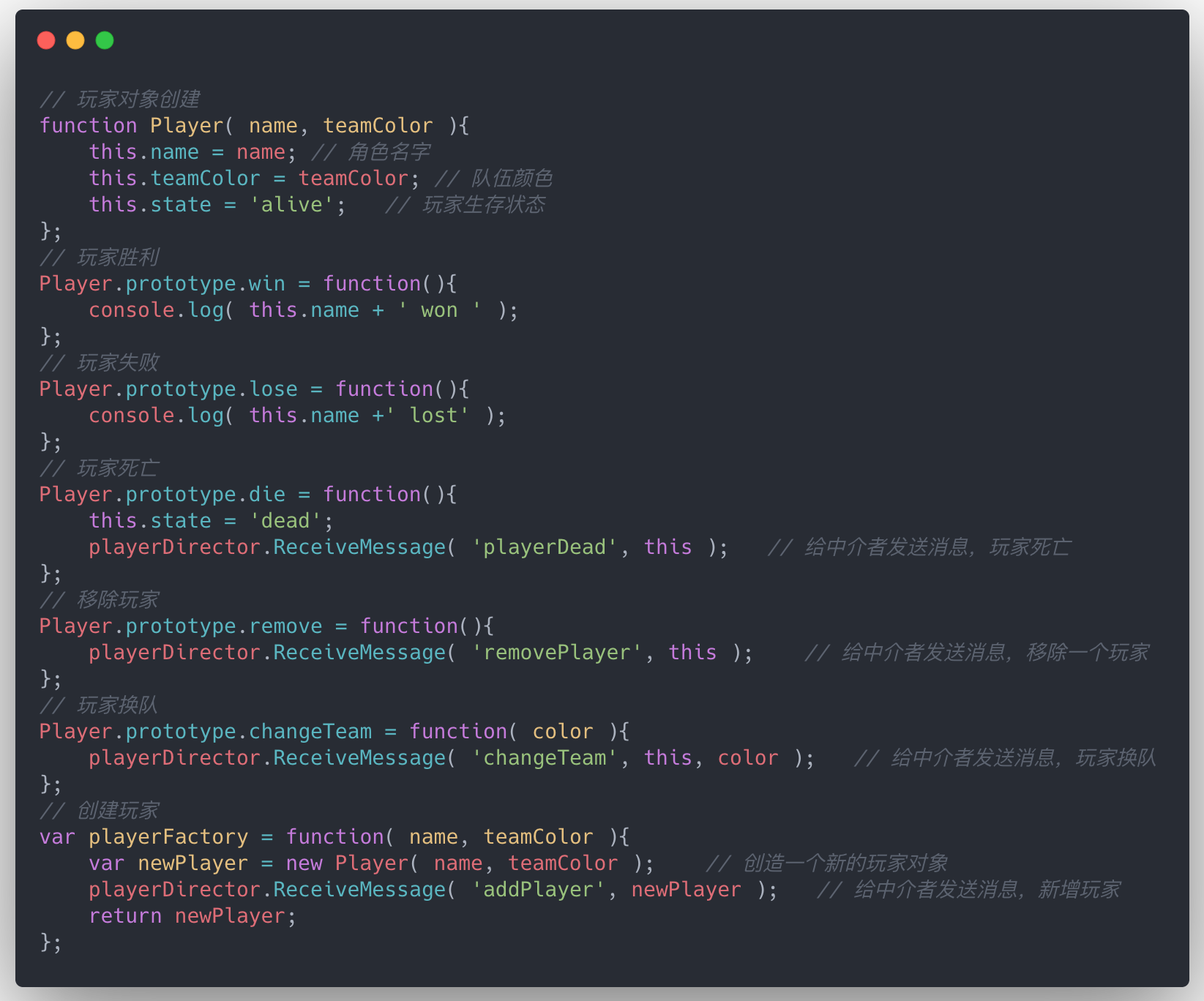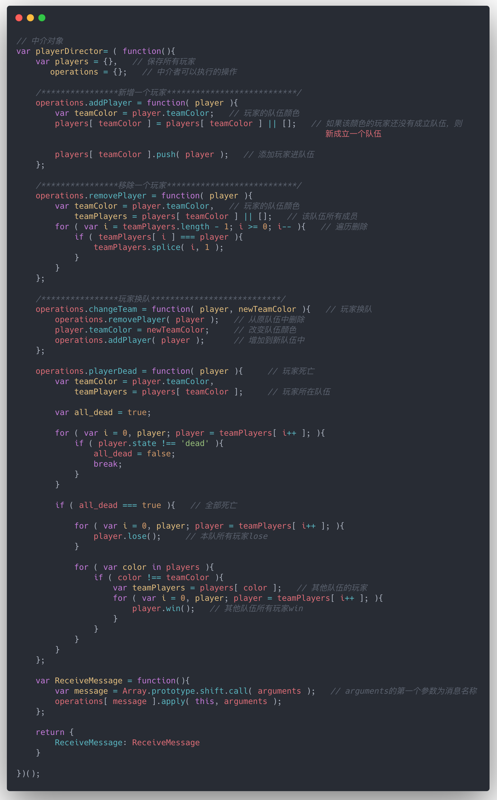增加一个中介者对象后,所有的相关对象都通过中介者对象来通信,而不是互相引用,所以当一个对象发生改变时,只需要通知中介者对象即可。
