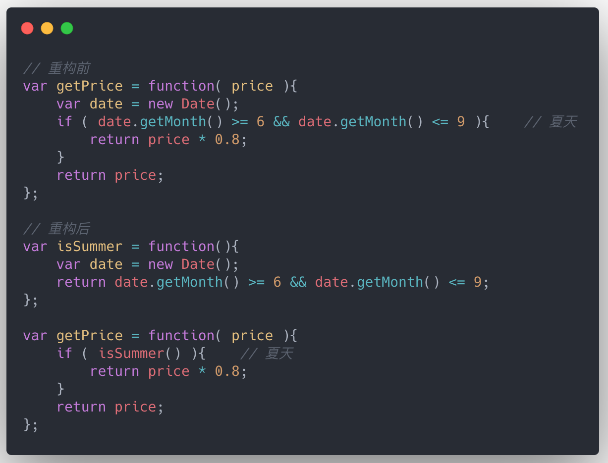- 独立出来的函数如拥有良好的命名,本身就起到了注释作用。