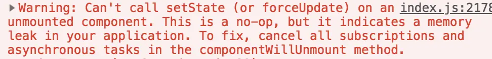 一个异步请求,当请求返回的时候,拿到数据马上setState并把loading组件换掉,很常规的操作。但是,当那个需要setState的组件被卸载的时候(切换路由、卸载上一个状态组件)去setState就会警告: