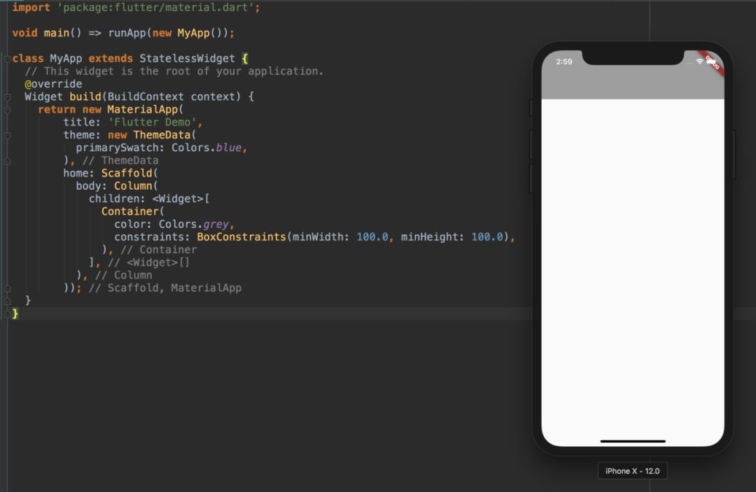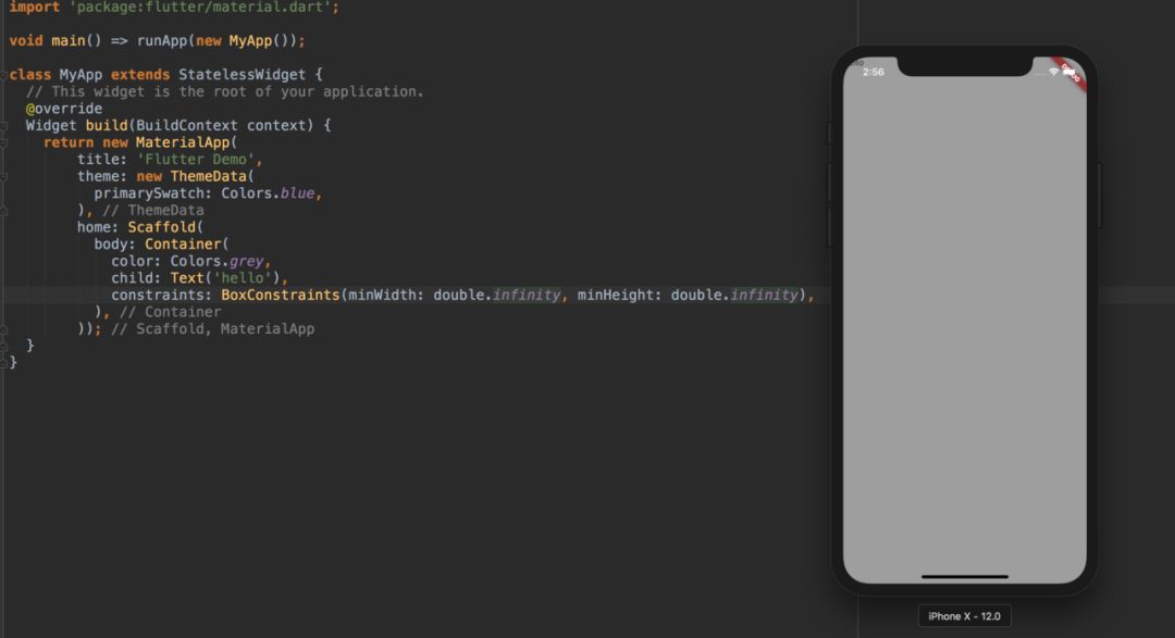 如果 Container 的约束是有限制的,那么没有子部件的 Container 会尝试尽可能大,如果 Container 的约束是没有限制的(unbounded),它就会尽可能小。
