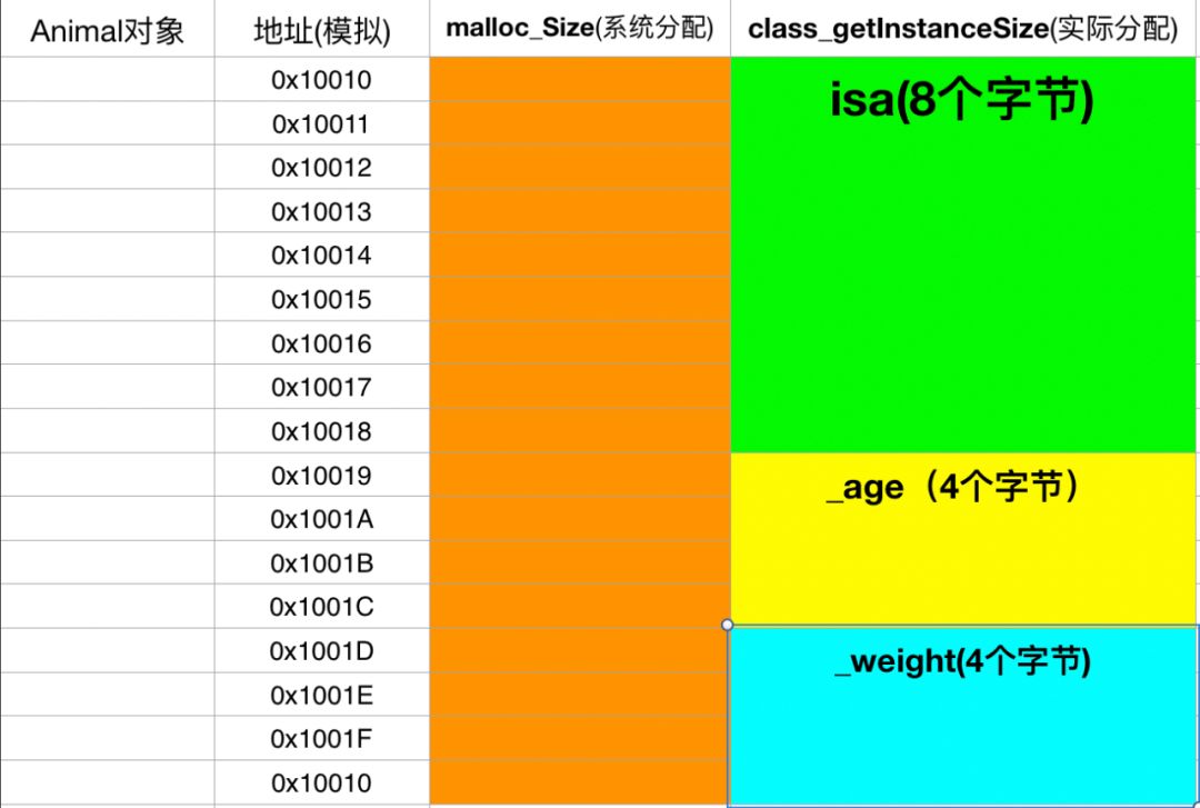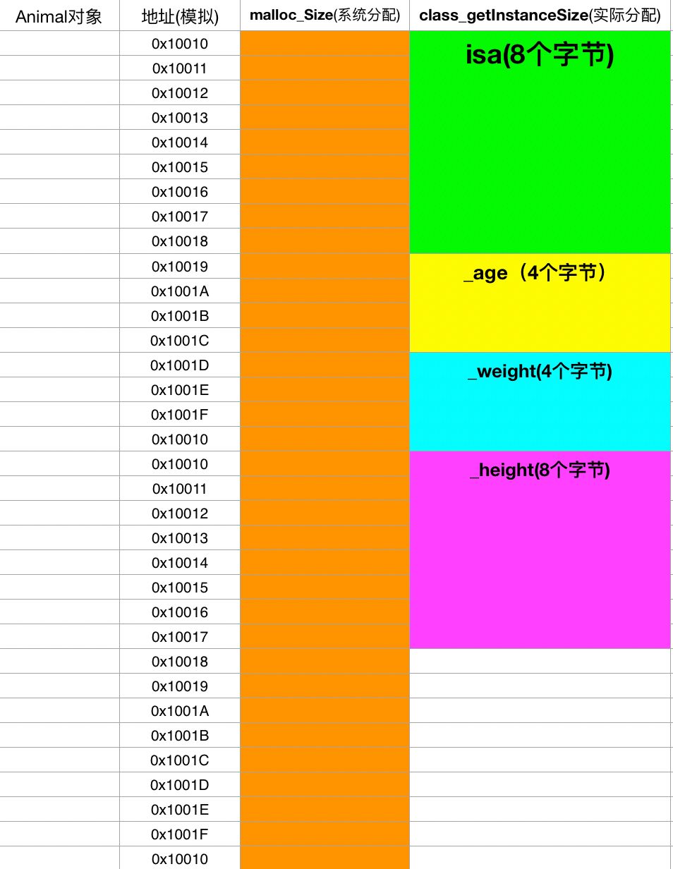 1struct NSObject_IMPL {2 Class isa;3};45struct Animal_IMPL {6 struct NSObject_IMPL NSObject_IVARS; // 8个字节7 int _age; // 4个字节8 int _weight; // 4个字节9};