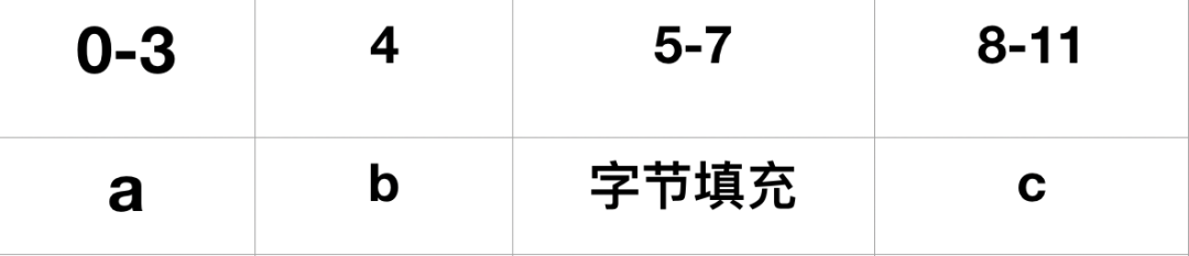 这样虽然保证了访问效率高,但并不节省空间,同时扩展性不是很好。例如,当字节对齐有变化时,需要填充的字节数可能就会发生变化。