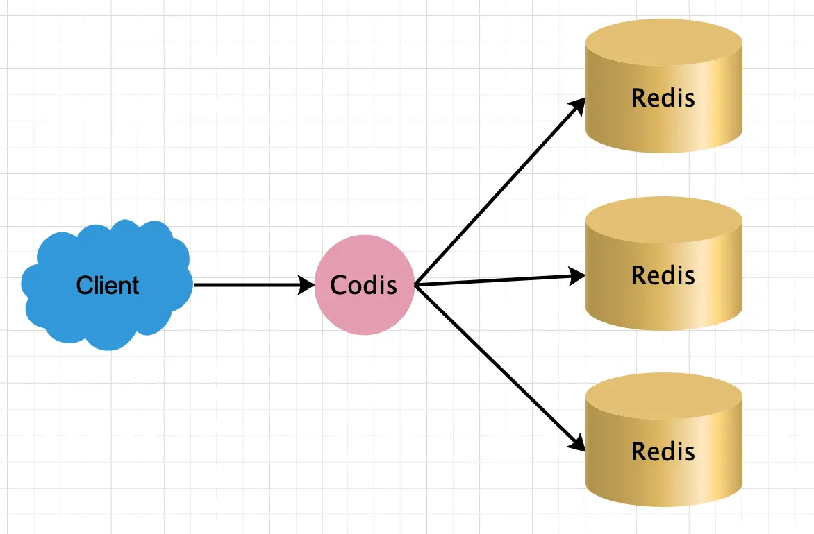 Codis底层会处理请求的转发、不停机的数据迁移等工作,对于前面的客户端来说,Codis是透明的,可以简单地认为客户端(client)连接的是一个内存无限大的Redis服务。