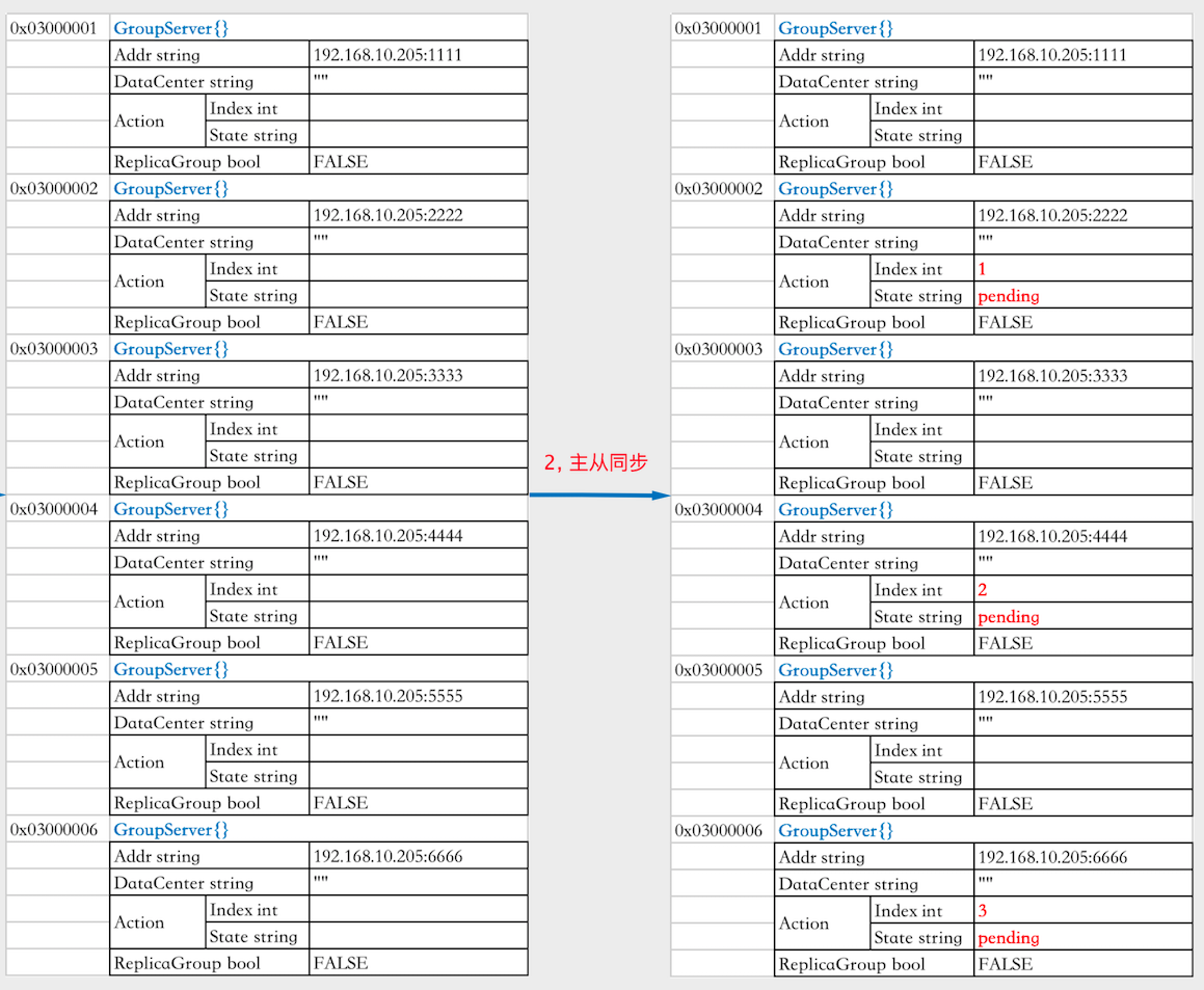⭕ 页面上点击主从同步按钮后,内存中对应的数据结构会发生相应的变化:
