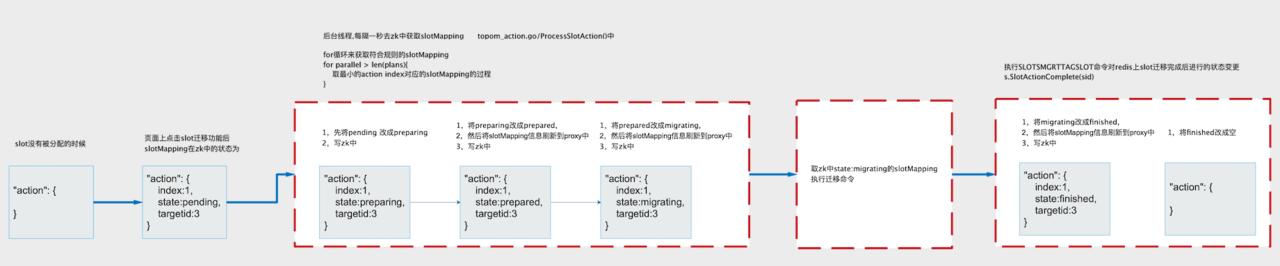 ""(ActionNothing) --> 新添加的codis,没有主从关系的时候,状态为空 pending(ActionPending) --> 页面点击主从同步之后写入zk中 syncing(ActionSyncing) --> 后台goroutine for循环处理主从同步时,写入zk的中间状态 synced --> goroutine for循环处理主从同步成功后,写入zk中的状态 synced_failed --> goroutine for循环处理主从同步失败后,写入zk中的状态