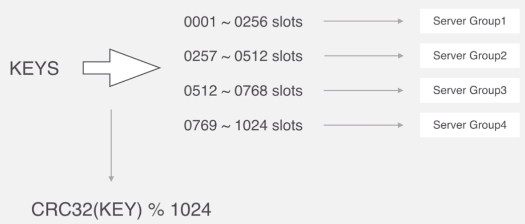 六、Codis内部原理补充说明 Codis中key的分配算法是先把key进行CRC32,得到一个32位的数字,然后再hash%1024后得到一个余数。这个值就是这个key对应着的槽,这槽后面对应着的就是redis的实例。