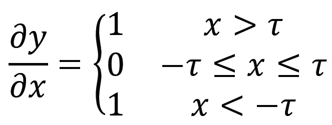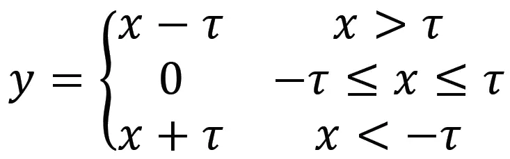 从以上公式可知,软阈值化的导数要么是1,要么是0。这个性质是和ReLU激活函数是相同的。因此,软阈值化也能够减小深度学习算法遭遇梯度弥散和梯度爆炸的风险。