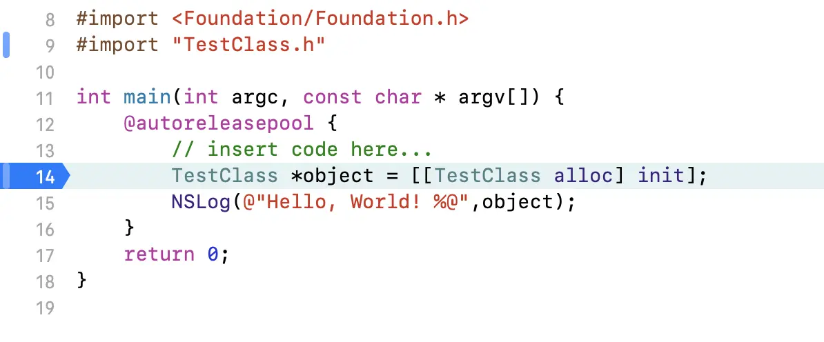 创建一个 NSObject 的子类 TestClass ,再次重现调试过程。