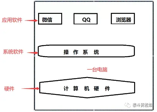 我觉得学习网络编程就是了解计算机之间如何进行网络通信,从上一篇《学网络编程前的计算机知识普及》中,我对计算机的一些基础常识进行了普及,让读者对计算机的软件、硬件以及操作系统有了一个清晰的认知。我在其中介绍了一个完整的计算机系统由三层结构构成,我再把那张图引用一下,方便后面知识的学习。
