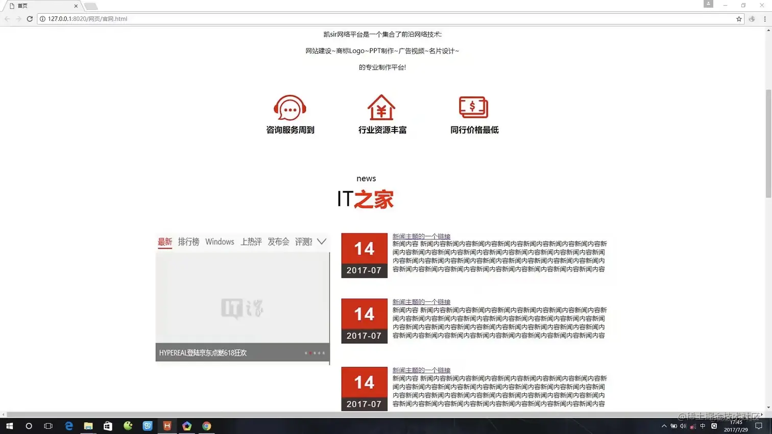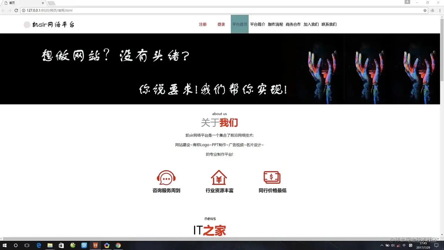本着这目标,2017年10月11日,在网易云课堂筛选出了一篇前端课程,然后就跟着学,埋头苦学一个多月后,对布局有了更深层次的认识,掌握了Jquery的一些常用属性以及操作。