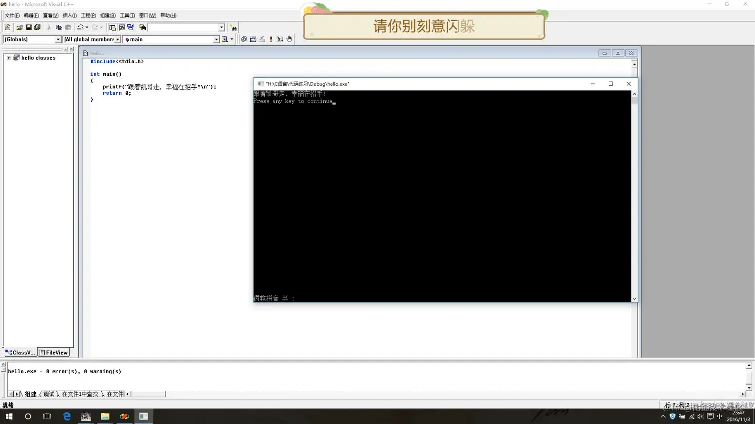 当时就开始百度找编程的相关资料,从哪里开始学,好多内容都指向了C语言,然后就在京东搜了下C语言相关的书籍,买了排名第一的《C语言从入门到精通》,家里没有电脑,就一直看那本书,看了一个寒假,学到for循环那里,看着书中的例子,太烧脑了,完全看不懂,到学校后,就开始折腾,在学校的电脑(win7系统)上,安装书中所说的VC++6.0的软件,找了很多资源,耗时好多天才把软件装上,然后就照着书中的Hello,World示例,开始敲,折腾了1周左右,代码和书上的例子核对了无数遍,一模一样的代码啊,就是跑不起来,最后失去了耐心,不写了,for循环看不懂,后面那些指针更看不懂,最终放弃了,就硬着头皮听学校里安排的那些课程。