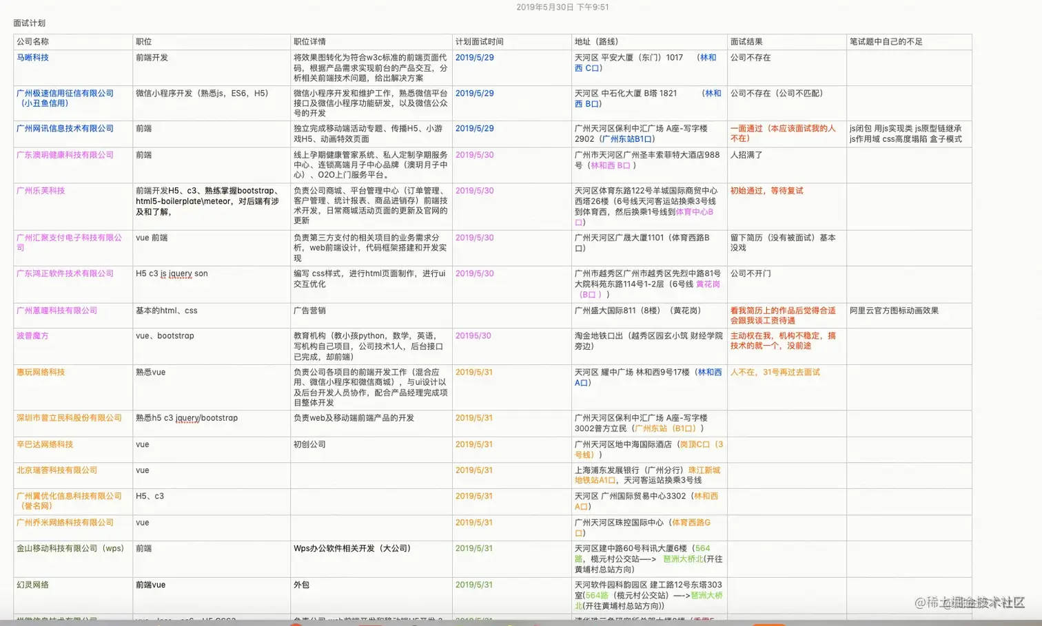 在boss直聘上,投了很多简历,都没人理我,最终决定,根据boss直聘上的公司地点,将其整理一下,然后把距离比较近的公司,整理到一起,然后直接上门说:我是来面试的,大概整理了20多家公司吧,一天面3到4家左右,有几家被直接拒绝说:需要先在boss直聘投简历,我们筛选通过了,才约你来面试的,其他几家技术面都过了,死在了hr那一关(学历问题,毕业证没拿到手)。