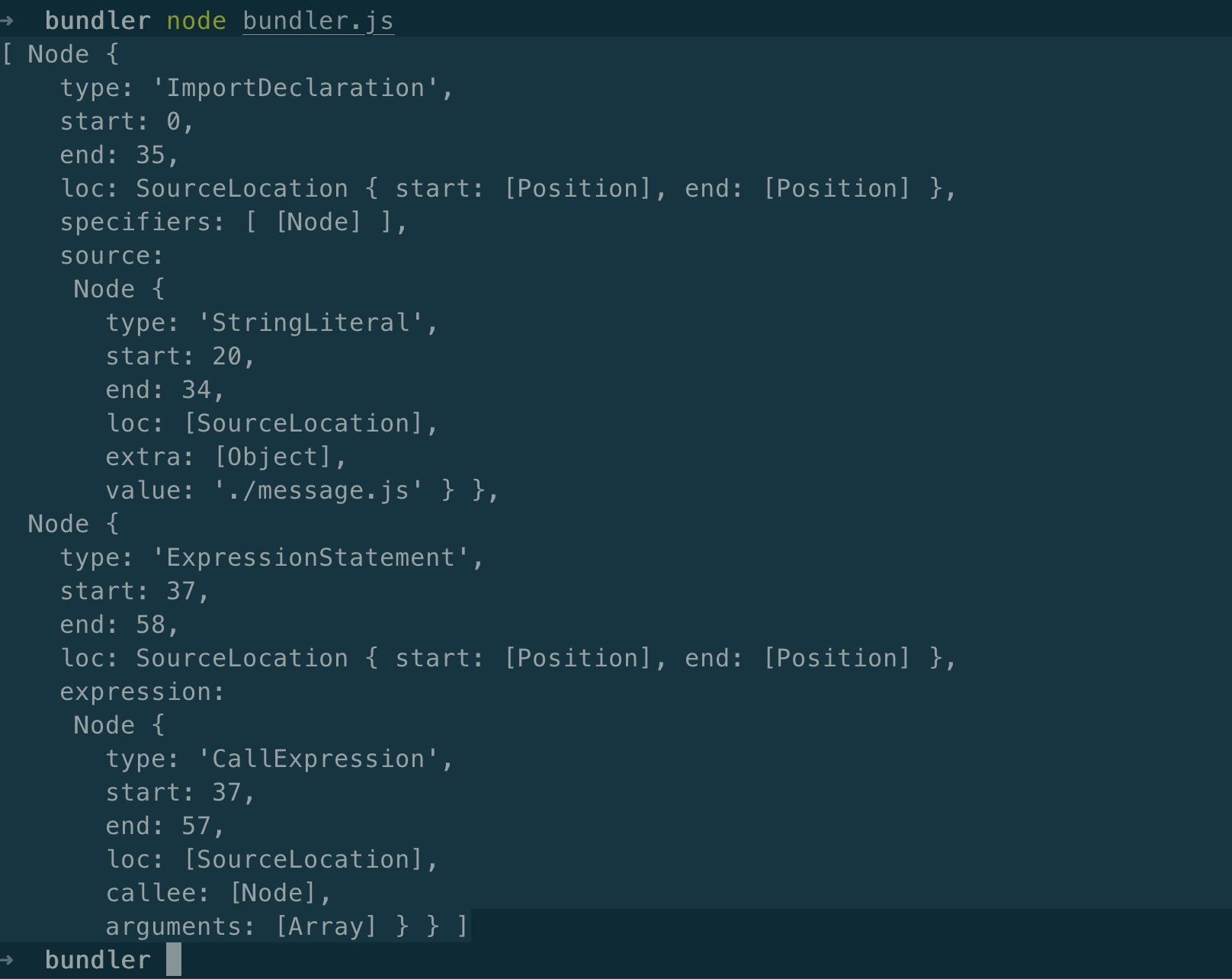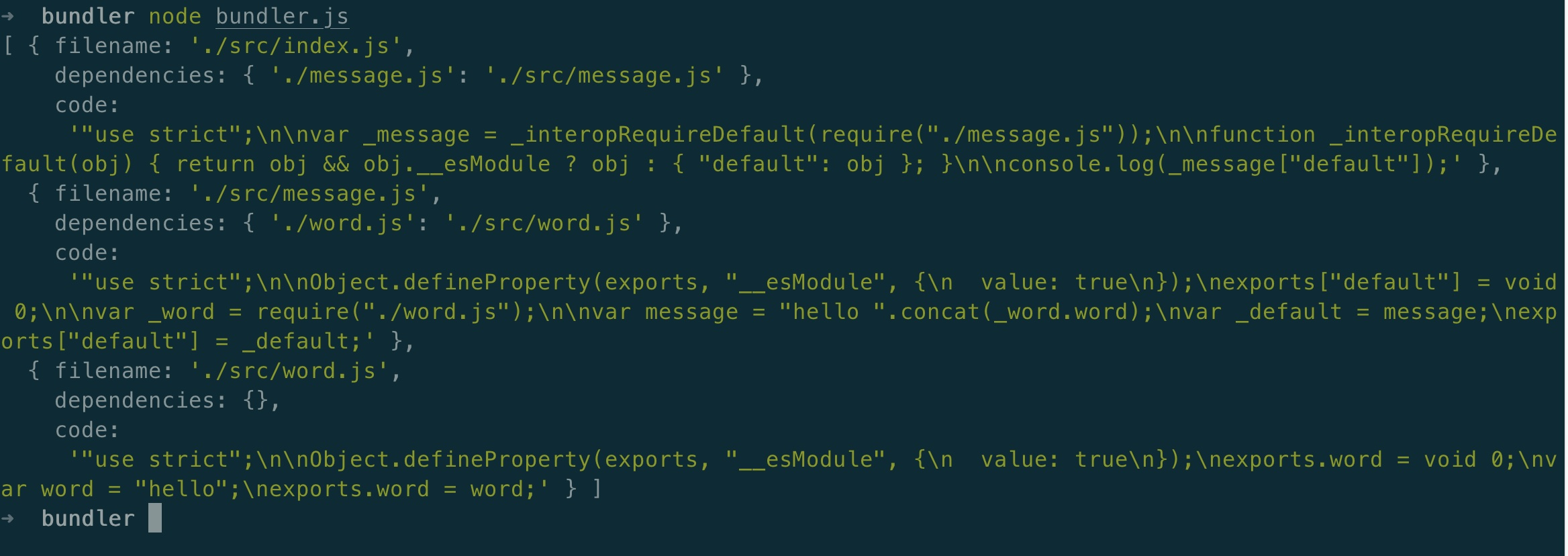 执行node bundler.js命令就会得到如下输出内容