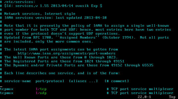 不同的服务所对应的埠口号也不同,具体写在 /etc/services 中: