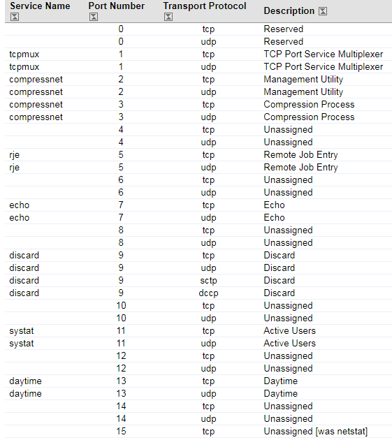 这些埠口号通常小于 1024 ,用于供给知名的网络服务软件使用。