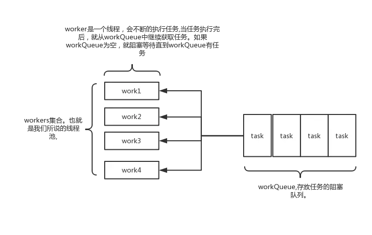 建立一个线程数量固定的线程池,规定的最大线程数量,超过这个数量之后进来的任务,会放到等待队列中,如果有空闲线程,则在等待队列中获取,遵循先进先出原则。