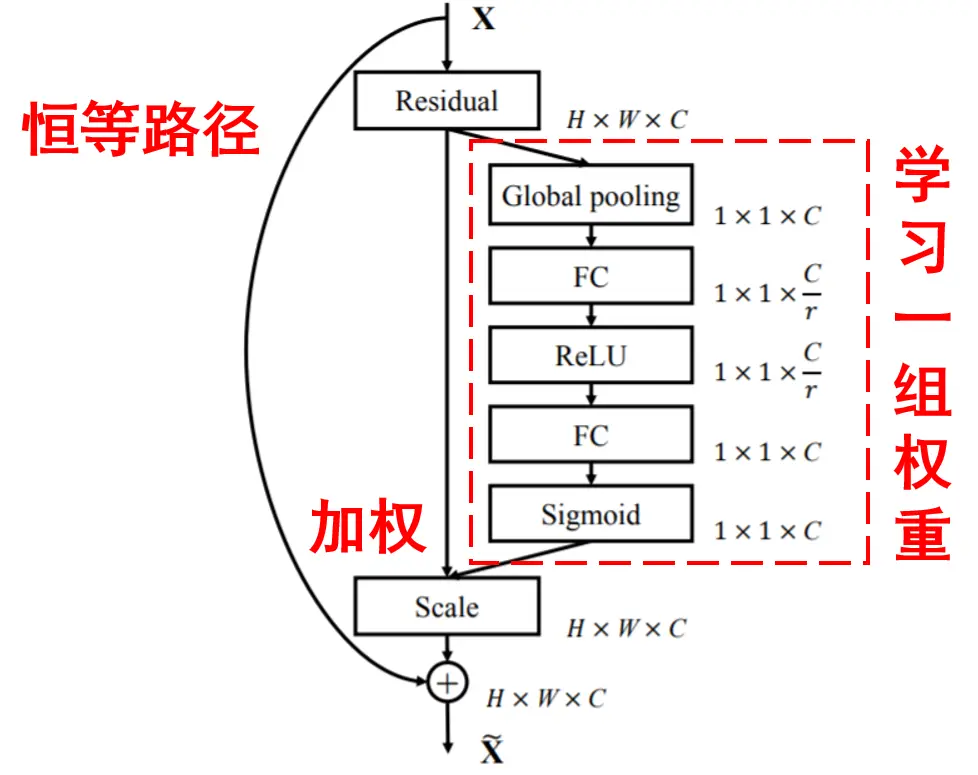 然后,相较于ResNet,SENet的残差模块有一点改进: