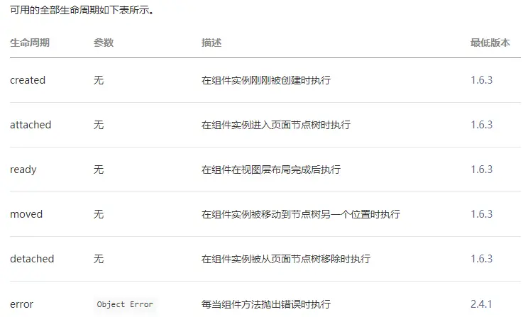 - 注意:这样的数据绑定只能传递 JSON 兼容数据。自基础库版本 2.0.9 开始,还可以在数据中包含函数(但这些函数不能在 WXML 中直接调用,只能传递给子组件)