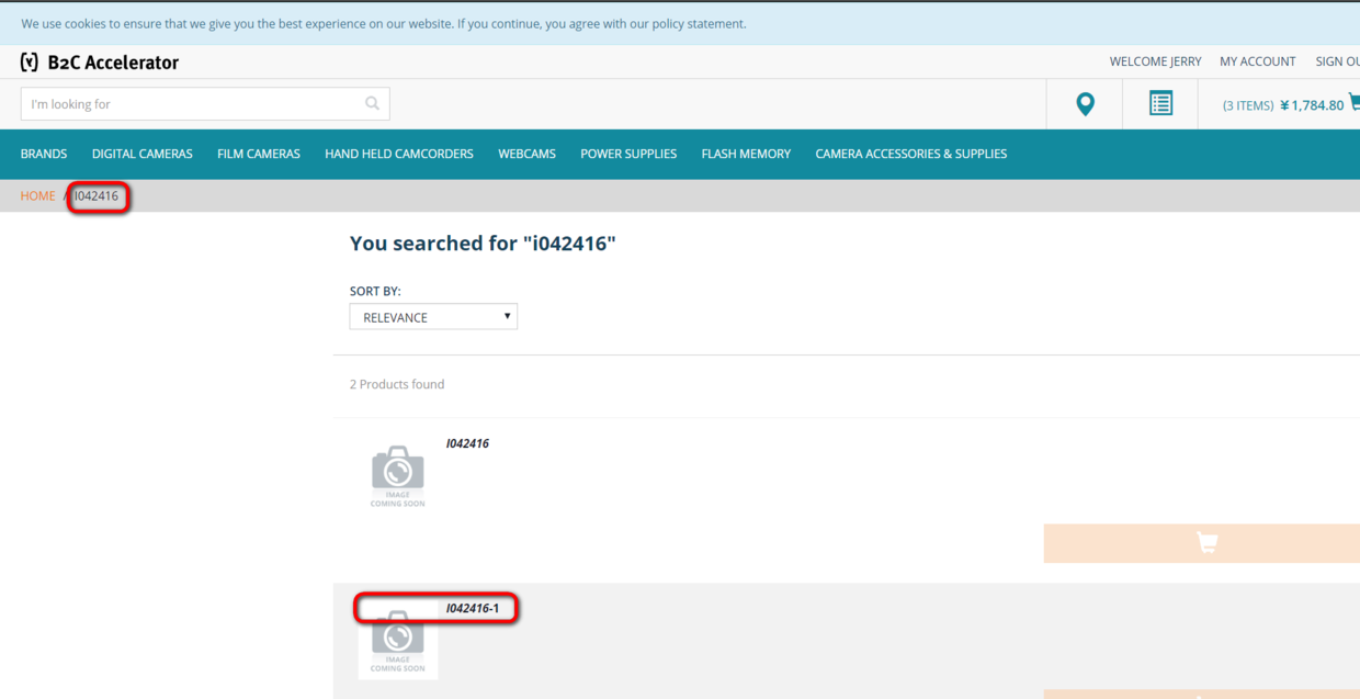 等到Storefront的indexing做完之后,前台通过关键字i042416也能将这个新创建的product搜索出来了: