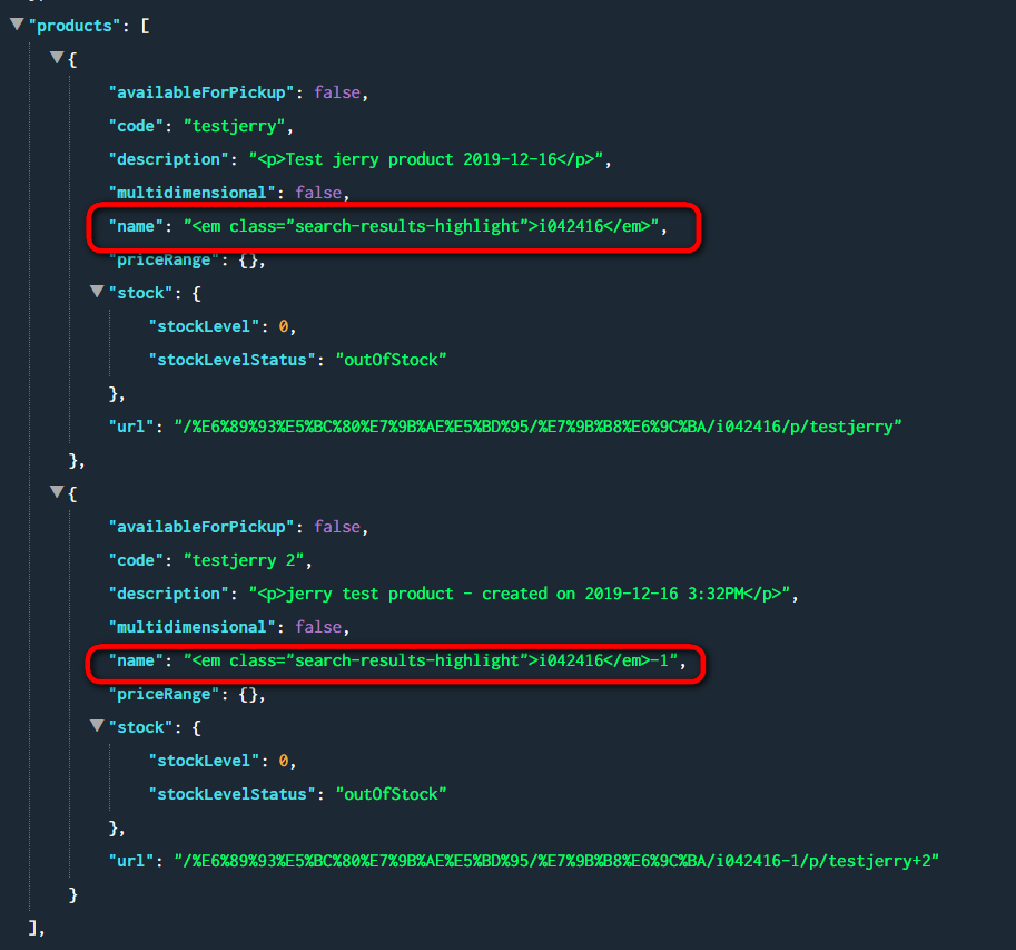 以及命中的product的code, description, name和stock(库存)字段。由此可见,当前模糊搜索匹配的字段为name.