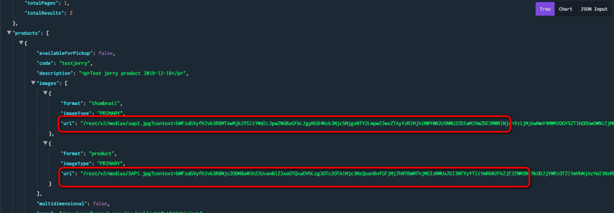如果想一个roundtrip里还能取回其他额外字段,比如product的图片url,在API后面加上fields=FULL这个参数: