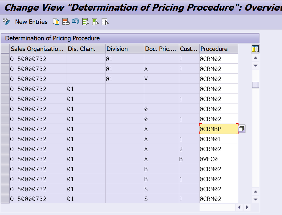 通过销售组织,分销渠道,部门,Document Pricing Procedure和Customer Pricing Procedure这五个参数可以唯一确定一个Pricing Procedure: