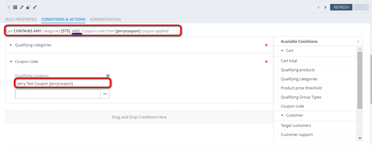 这条规则的类型是Qualifying coupons,即用户必须持有id为jerrycoupon的优惠券。