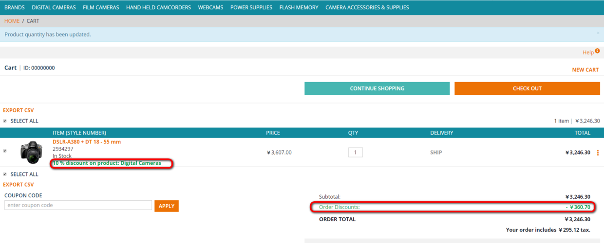最后下单时,购买这个3607元的数码相机,节省了10%也就是360.7元。