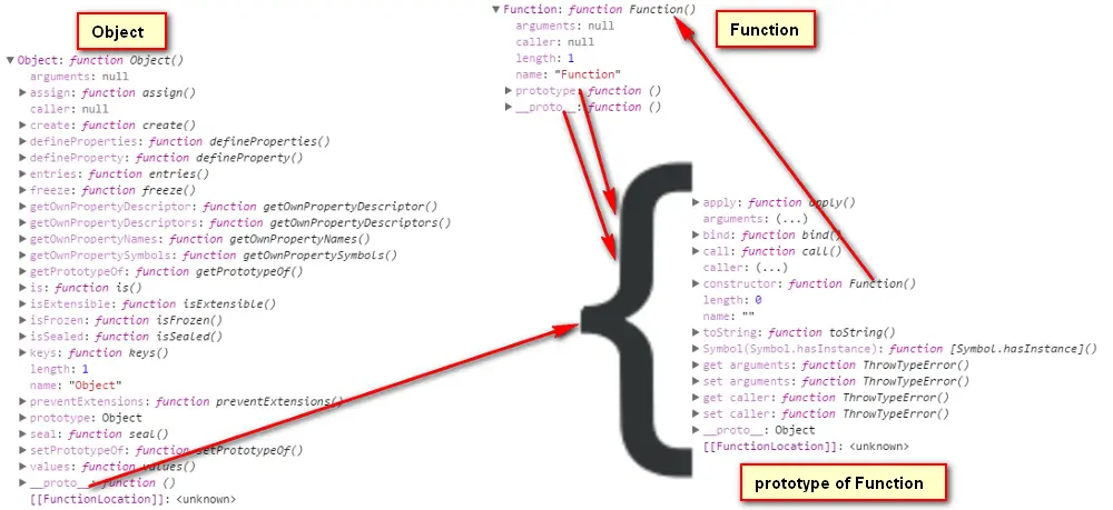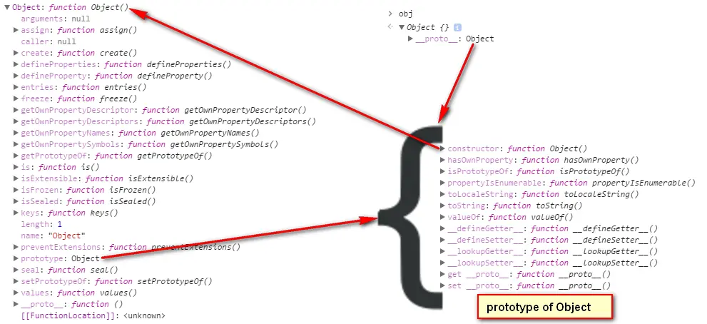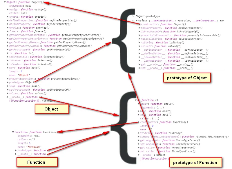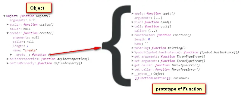 在上面的图片中,左边是 Object 构造函数展开后的。你可能会感到疑惑,里面怎么有这么多函数。函数其实也是对象,因此它也可以像对象一样拥有各种属性。