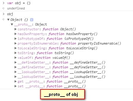 如果我们查看 Object 构造函数的 prototype 属性,你会发现它和 obj.__proto__ 一模一样。事实上他们是两个不同的指针指向了相同的对象。