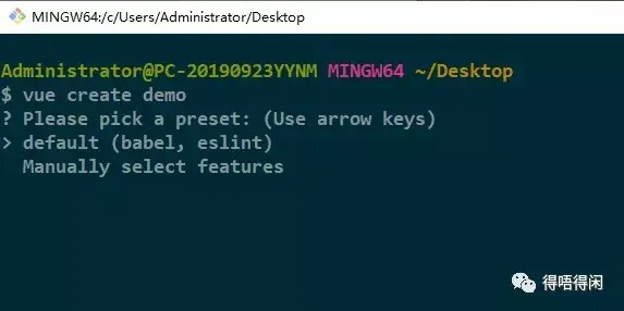 用git bash执行`vue create demo`时发现交互提示符不工作,