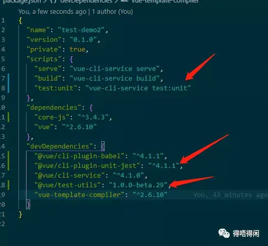 可以看到我们scripts多了一个命令`test:unit`,我们可以改写成"test": "jest",不改也没有什么问题