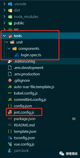 我们安装这个@vue/cli-plugin-unit-jest依赖的时候,会在根目录下生成一个test文件夹,和一个jest配置文件jest.config.js