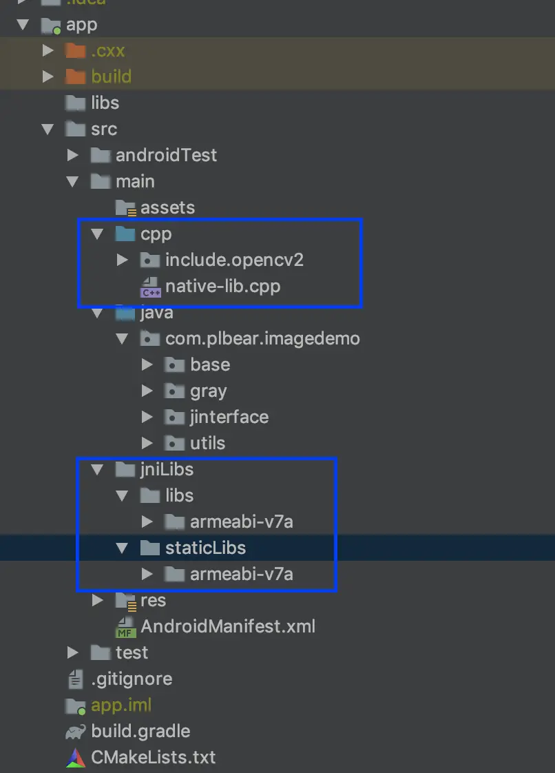 接下来我们就可以在jni层面去调用OpenCV的函数进行开发了, 示例如下: