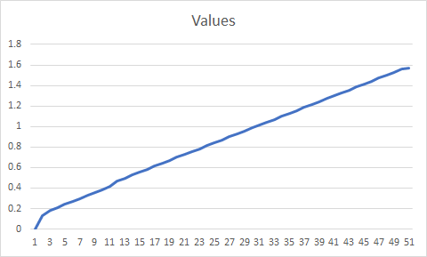 我们看到值在1000毫秒内从0.0(lowerBound)到1.0(upperBound)变化。生成了51个不同的值。