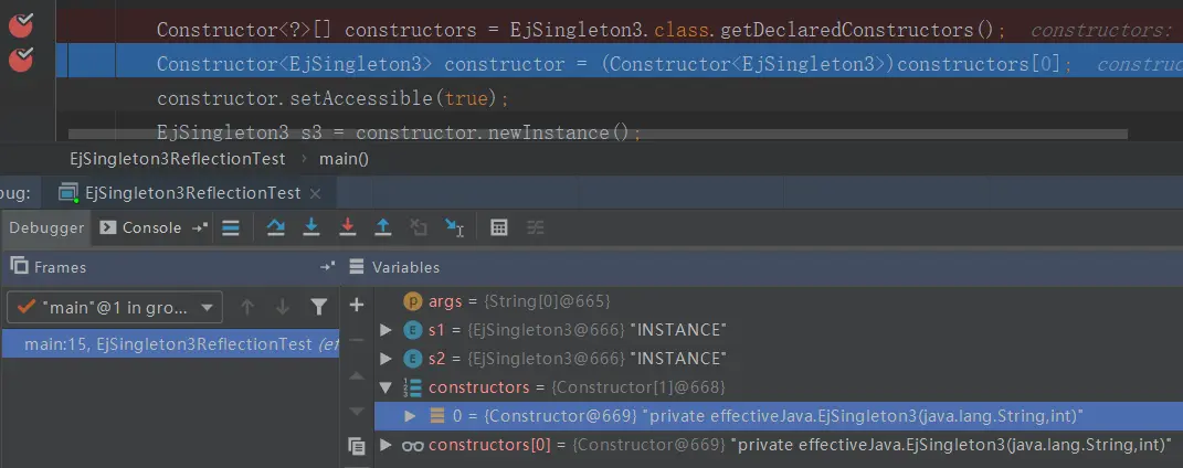 // Constructor<?>[] constructors = EjSingleton3.class.getDeclaredConstructors();
