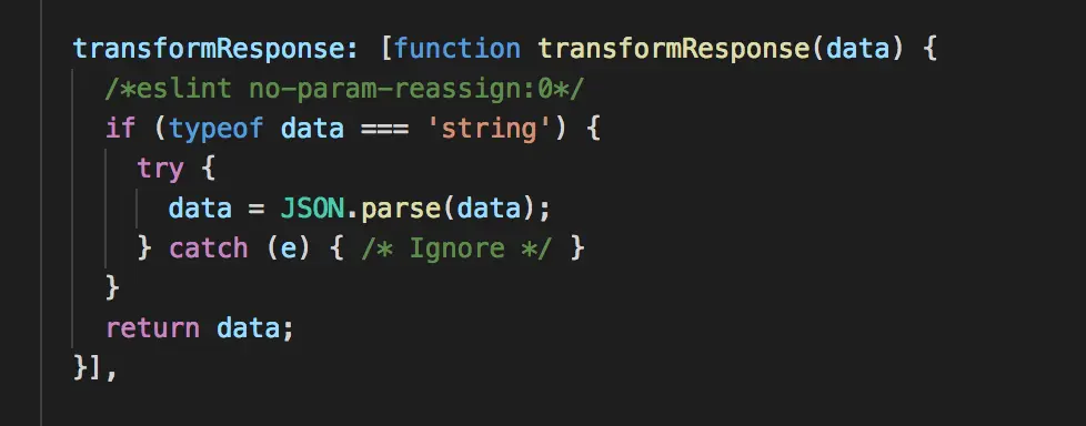 这个属性和transformRequest属性类似,也是一个数组,其数组元素是一个函数,做的事情很简单,就是对字符串类型的响应数据,对其尝试转换为JSON格式数据,返回客户端