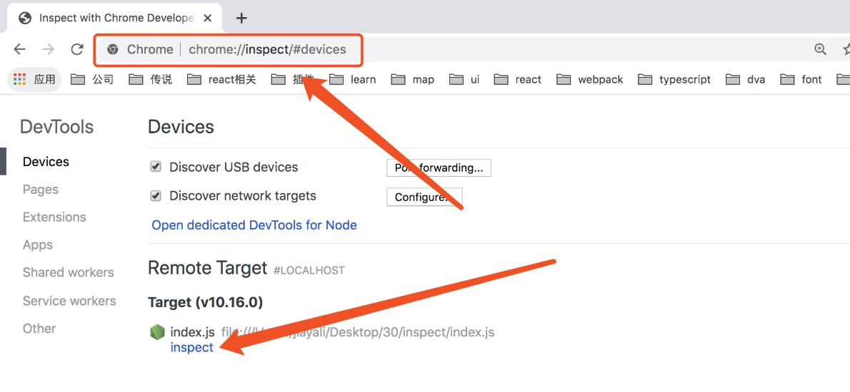 - 在 Chrome 中打开链接: chrome://inspect/#devices