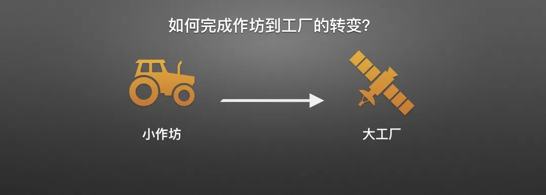 回到我们今天的主题:如何完成作坊到工厂的转变?把上面那些技术全都用一遍吗?哪怕你说插件化 Kotlin 都不适合我们,我找出适合我们的技术都用上,就是大工厂了吗?