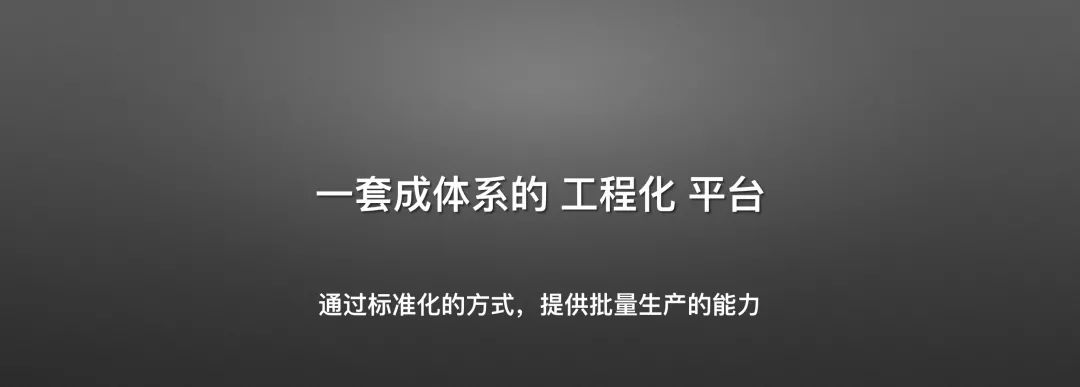 那么何谓工程化平台,就是通过标准化流程的方式,去做的能够批量生产的能力。