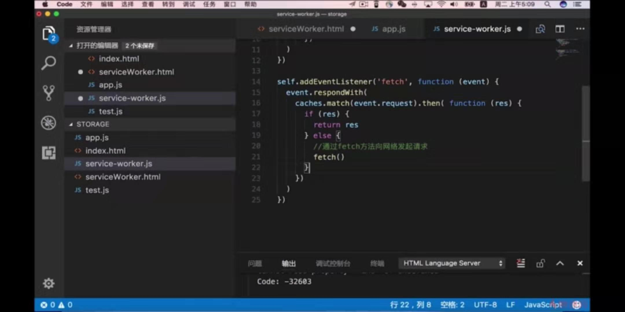 通过监听fetch事件去监听网路中所有的请求,然后返回一个event